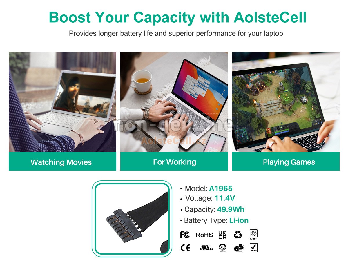 Baterie MacBook Air Core i5 1.6GHz 13 Inch A1932(True Tone 2019) od společnosti AolsteCell, využívající špičkovou technologii polymerových článků s vysokou hustotou, se může pochlubit větší kapacitou bez přidaného objemu, což prodlužuje dobu chodu vašeho zařízení, což umožňuje nepřerušovanou práci, hraní nebo studium s méně častým nabíjením, což výrazně zvyšuje efektivitu i pohodlí.