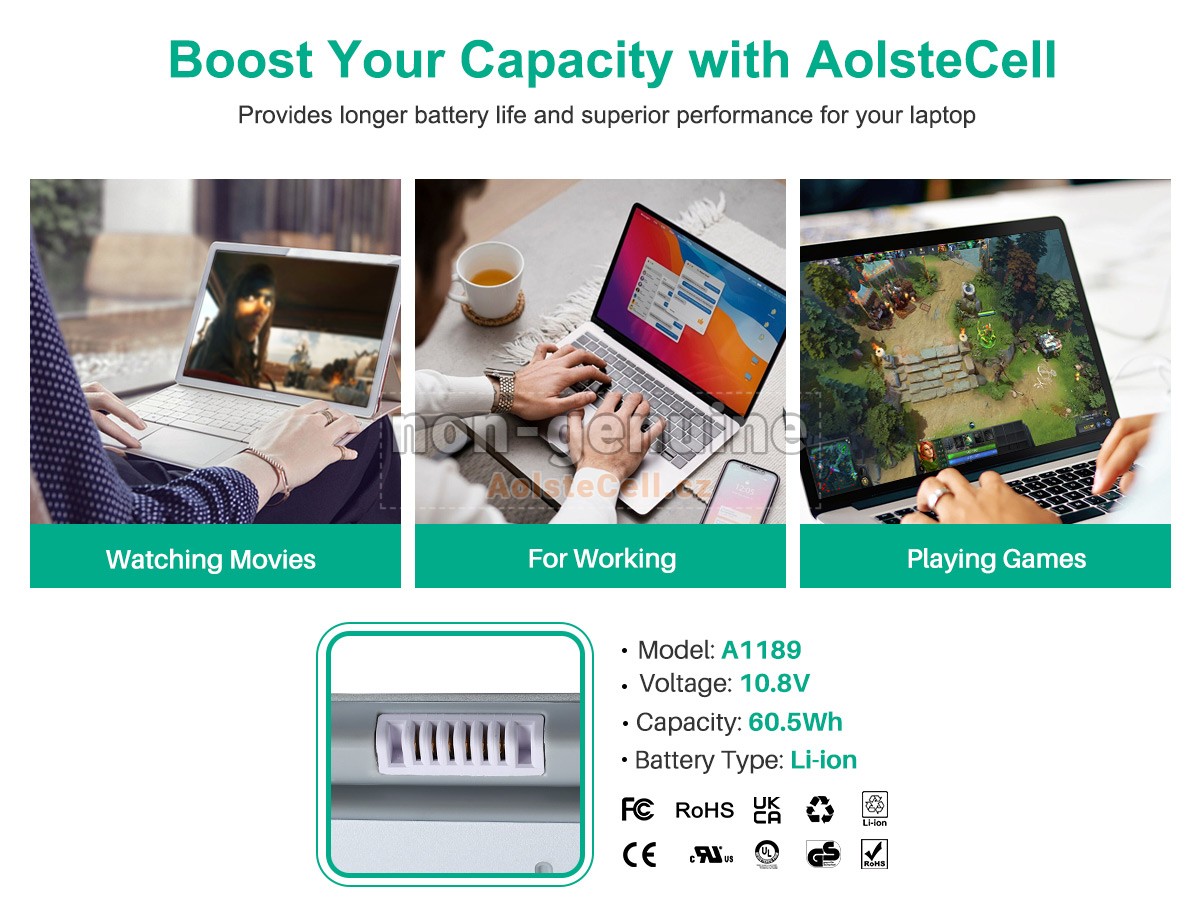 Všechny baterie prodávané na AolsteCell.cz jsou náhradní díly. AolsteCell.cz není spojen s původními výrobci. Všechny názvy značek nebo modelů uvedené výše jsou uvedeny pouze pro účely kompatibility.