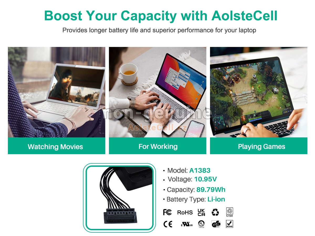 Všechny baterie prodávané na AolsteCell.cz jsou náhradní díly. AolsteCell.cz není spojen s původními výrobci. Všechny názvy značek nebo modelů uvedené výše jsou uvedeny pouze pro účely kompatibility.