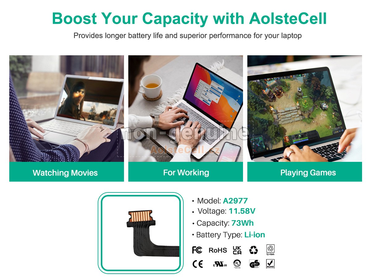 Všechny baterie prodávané na AolsteCell.cz jsou náhradní díly. AolsteCell.cz není spojen s původními výrobci. Všechny názvy značek nebo modelů uvedené výše jsou uvedeny pouze pro účely kompatibility.